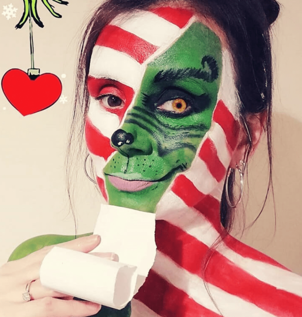 Illusory body art always evokes delight. In this work, fans of the Grinch will easily recognize a familiar image. The meticulous execution is striking: the details are so precisely crafted that they create a sense of volume and movement. Particularly impressive is the perfectly folded sheet of paper—at first glance, it seems real.