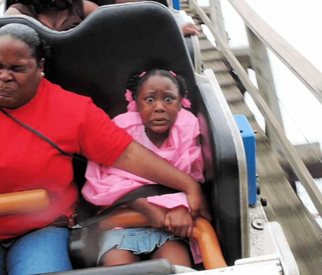 The epiphany came instantly – this boy realized that being the son of a fearless father was too much of a challenge. As the car hurtled forward, his father’s face was filled with pure terror. These rides are clearly not for all ages. Meanwhile, the girl at the back of the train looked absolutely delighted. But the young passenger, it seems, will remember this extreme “family vacation” for a long time.