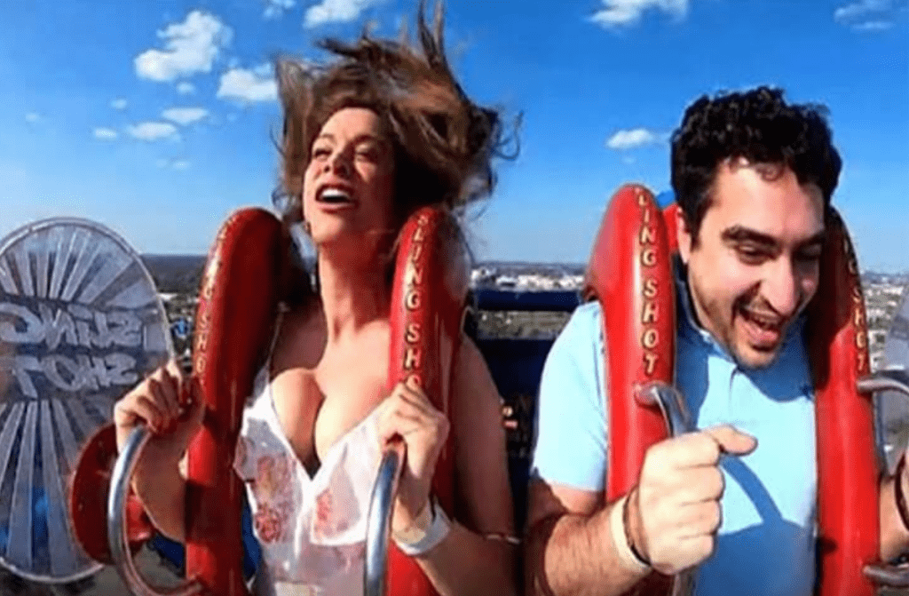 When choosing an outfit for a trip to an amusement park, it’s important to keep comfort and safety in mind. Apparently, this visitor didn’t consider the specifics of the extreme rides. The lack of appropriate clothing backfired: the ride turned out to be too revealing. However, the woman herself seemed engrossed in the experience and didn’t immediately notice the embarrassment.